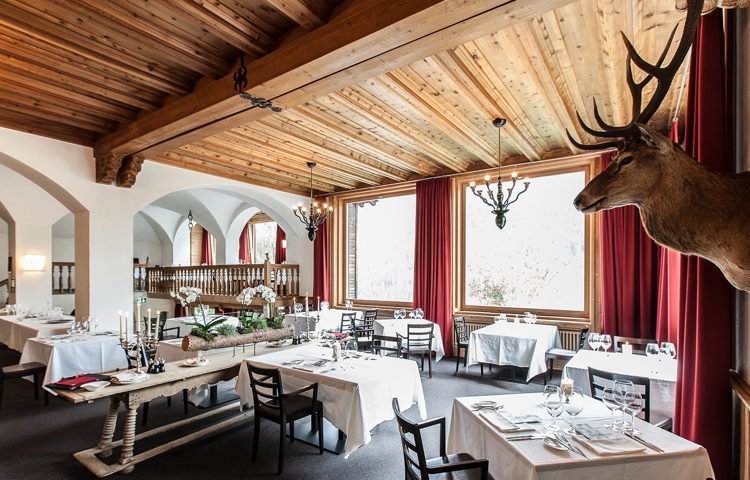 Ideal für Hochzeitsfeste und grössere Bankette. Unser Engadiner Gourmet-Restaurant mit einmaliger Aussicht auf die Berge.