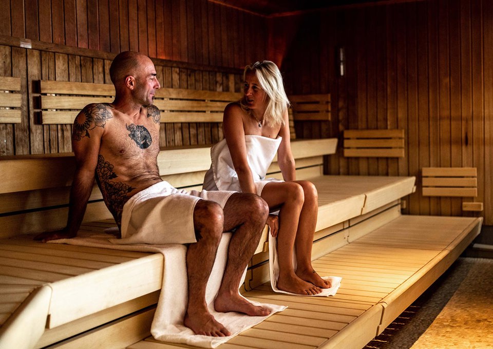 Die modern gestaltete Sauna-Landschaft (Nacktbadebereich) mit 3 Innen- und Aussensaunen, einem Aussenbecken, Dampfbad, Fusswärmebecken, Liege- und Ruheraum empfehlen wir Ihnen «wärmstens».