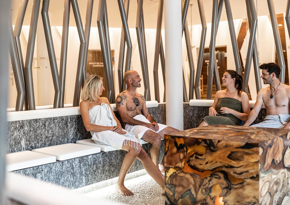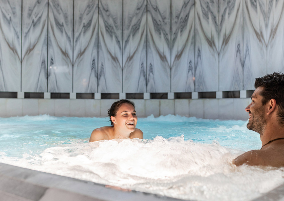 Durch unsere beheizte Passarelle gelangen Sie bequem im Bademantel ins Engadin Bad Scuol und die Therme. Auf 13'000 m² finden Sie Mineralquellen, eine Bad- und Saunalandschaft mit sechs Innen- und einem Aussenbecken, Solebad, Solarien, Dampfbad, Wechselbad und Ruhebereich.