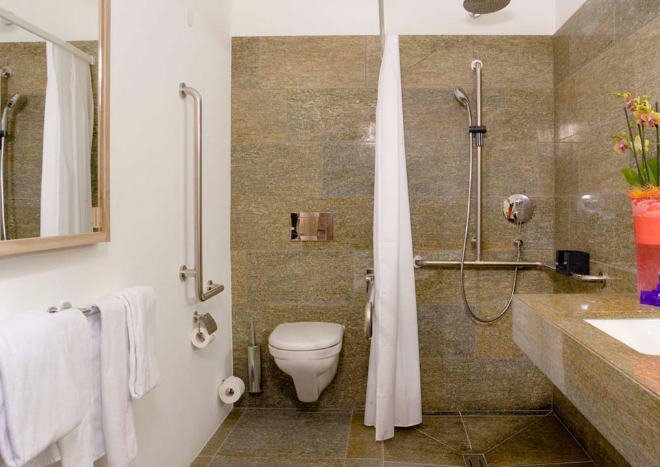 Je nach Beeinträchtigung können unsere regulären Zimmer mit Rollstuhl genutzt werden. In der Ala Nova verfügen wir zudem über Barrierefreie Zimmer mit extrabreiten Türen sowie rollstuhlgängigem Badezimmer mit speziellen Halterungen und kippbarem Spiegel. Die barrierefreien Zimmer können zudem mit einem hoteleigenen, höhenverstellbaren Pflegebett ausgestattet werden (nach Verfügbarkeit).
