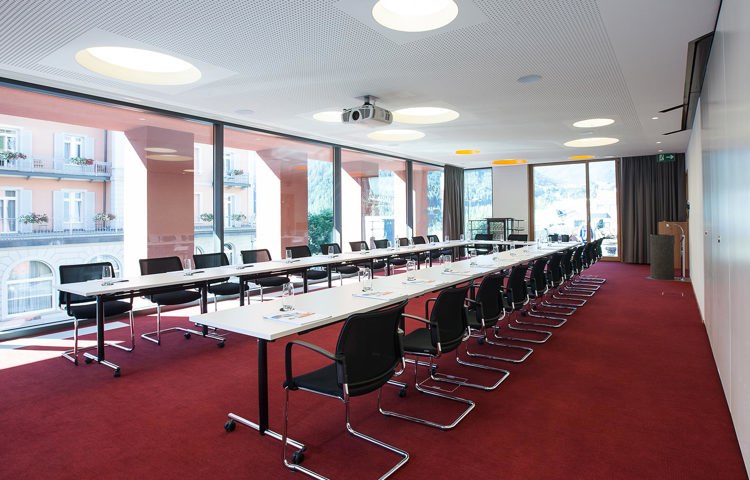 Our seminar and conference rooms in the Chasa Nova leave nothing to be desired. Two of the rooms are connected by a soundproof sliding door and offer combined space for up to 130 people on request - our technical infrastructure is state-of-the-art. Wireless microphones, acoustic ceilings, permanently installed beamers, indirect lighting, simultaneous presentation on two screens. All rooms have beamers, TV/DVD and free WLAN (400 Mbps).