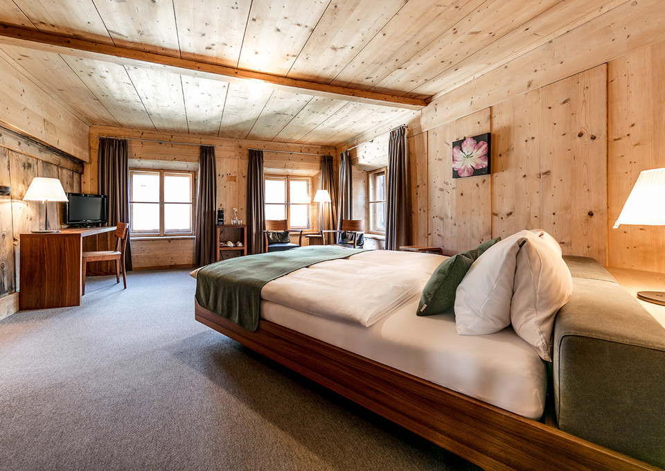 The 4-star hotel is one of the most romantic hotels in the Lower Engadine in a 400-year-old Engadine house with an Engadine gourmet restaurant. The GuardaVal offers direct access to the Engadin Bad Scuol. 36 individually designed rooms invite you to a romantic stay.