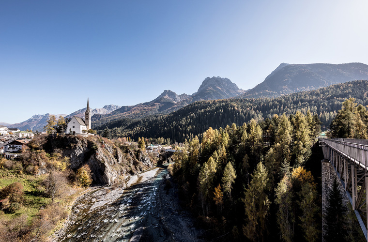 Tarasp is the only village in the Engadin that was not reformed, which is why we visit the Catholic church there. While we are there, we take a look at Tarasp Castle before hiking via Vulpera to Scuol, where we admire the Engadin Museum.